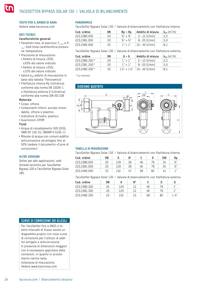 TacoSetter Bypass Solar 130 | Valvola di bilanciamento con filettatura esterna