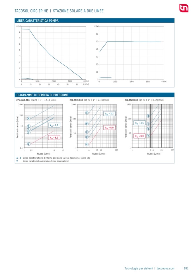 Linee caratteristiche di ritorno posizione valvola TacoSetter Inline 130