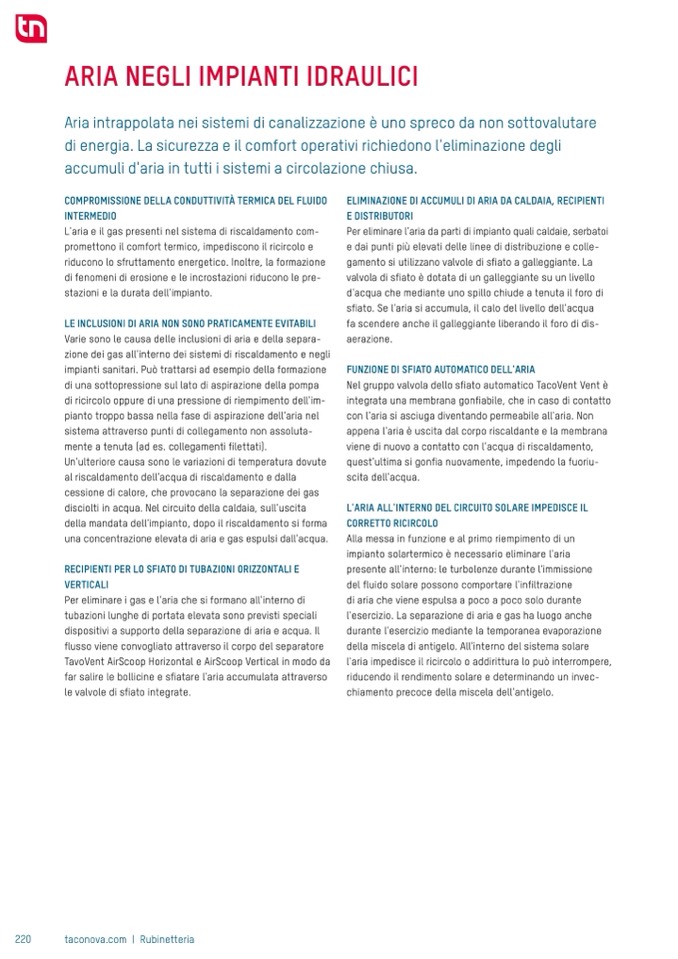 Per eliminare l'aria da parti di impianto quali caldaie, serbatoi