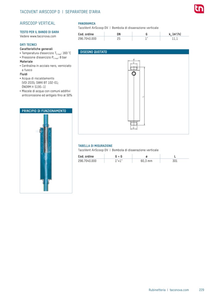 TacoVent AirScoop DV | Bombola di disaerazione verticale