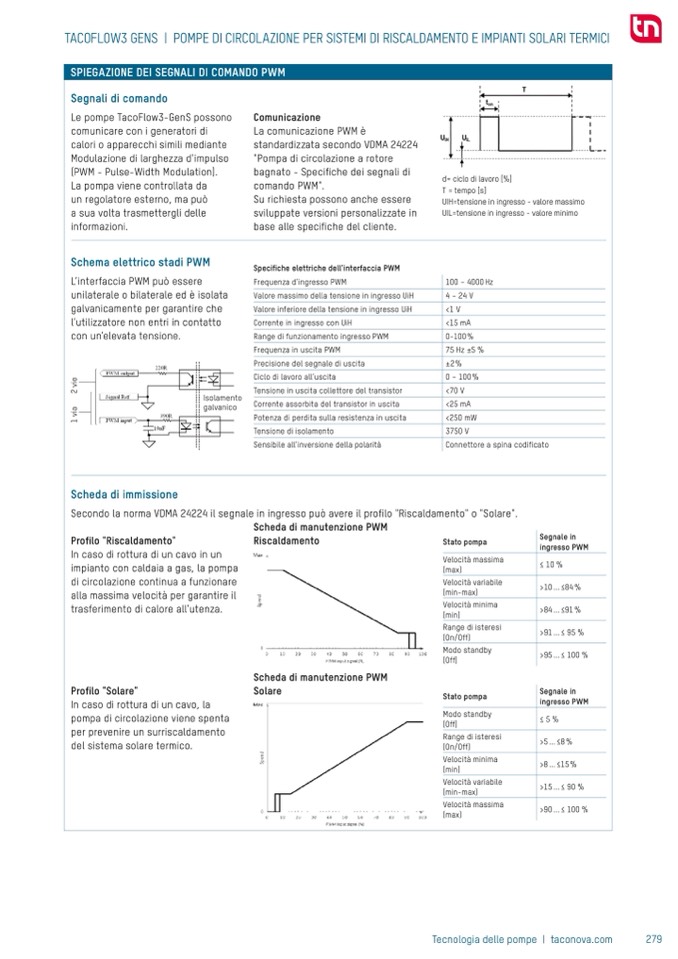 Secondo la norma VDMA 24224 il segnale in ingresso può avere il profilo "Riscaldamento" o "Solare".
