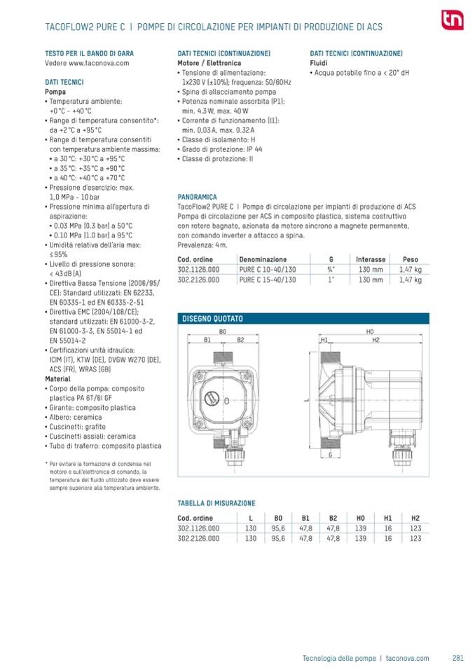 TacoFlow2 PURE C | Pompe di circolazione per impianti di produzione di ACS