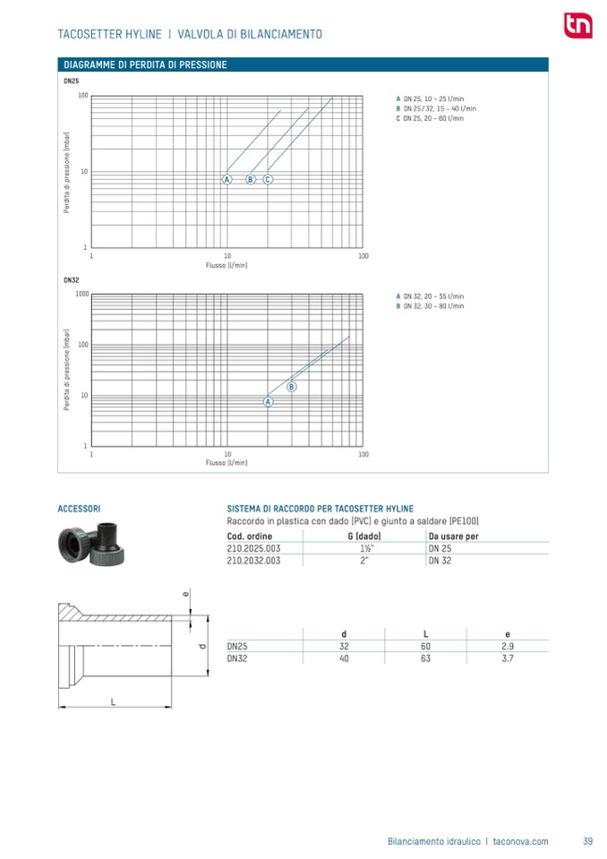 Raccordo in plastica con dado (PVC) e giunto a saldare (PE100)