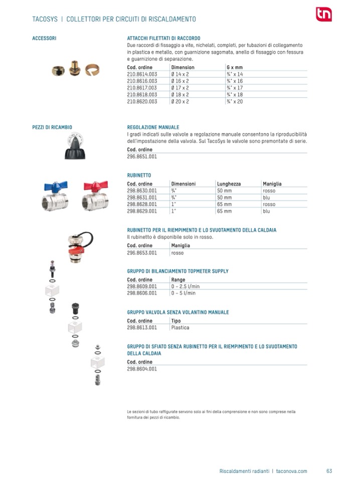 dell’impostazione della valvola. Sul TacoSys le valvole sono premontate di serie.