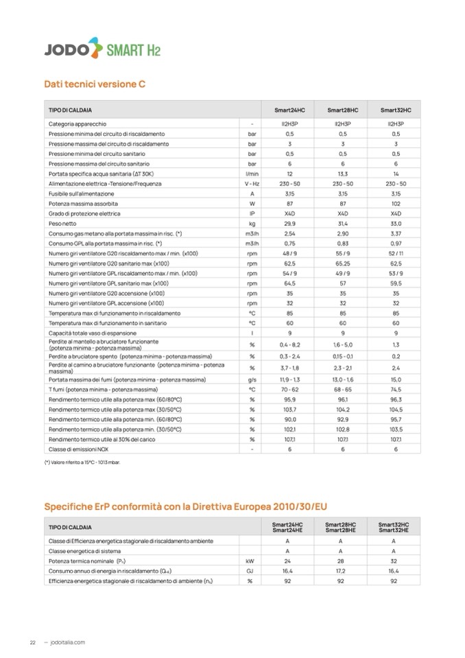 (*) Valore riferito a 15°C - 1013 mbar.