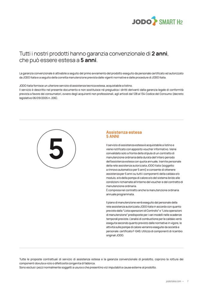 assistenza per 5 anni su tutti i componenti della caldaia e/o