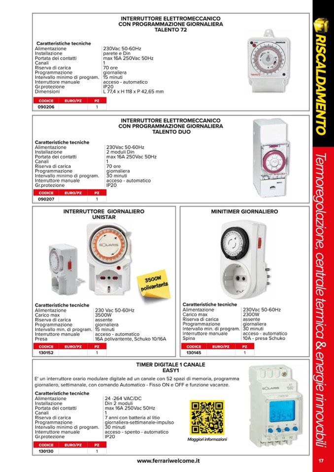 giornaliero, settimanale, con comando Automatico - Fisso ON e OFF e funzione vacanze.