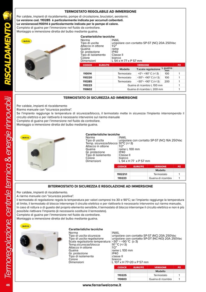 TERMOSTATO DI SICUREZZA AD IMMERSIONE