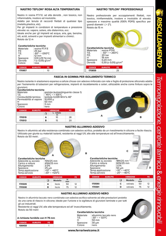 Nastro isolante in elastomero espanso a cellule chiuse con adesivo rinforzato con rete e foglio di protezione siliconato adatto