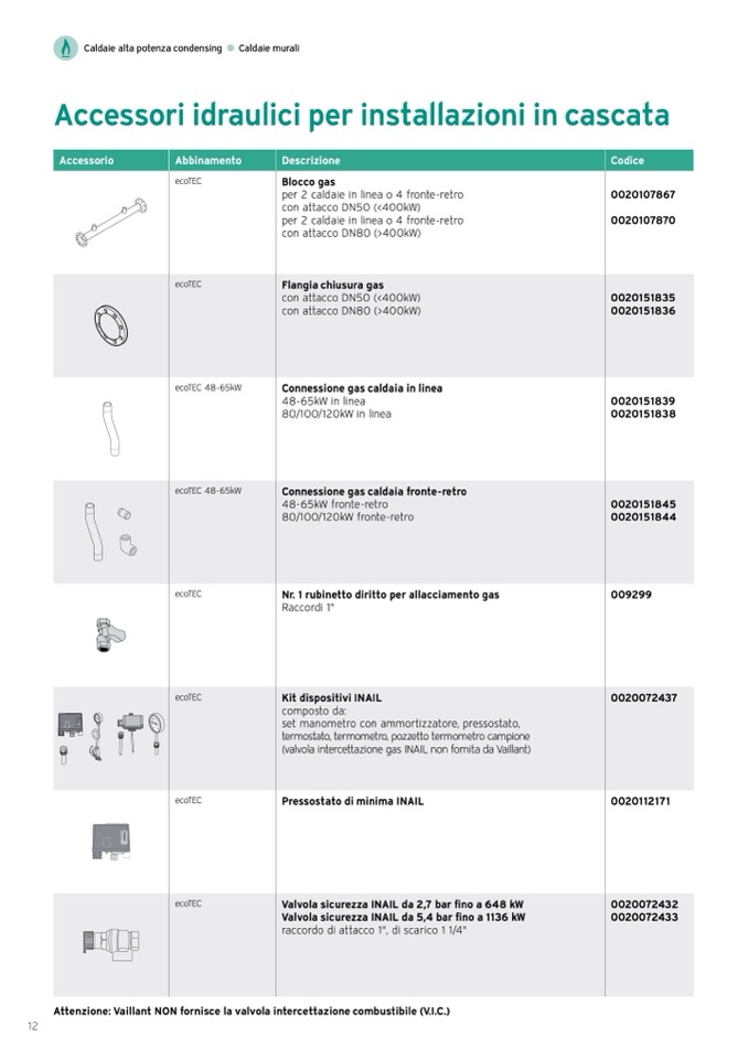 (valvola intercettazione gas INAIL non fornita da Vaillant)