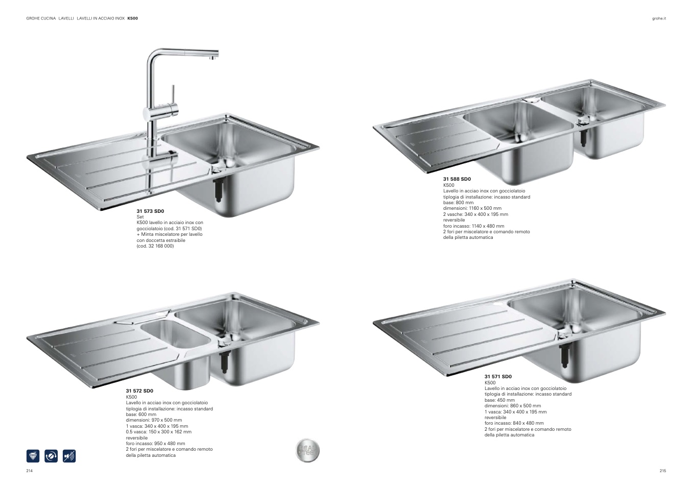 K500 lavello in acciaio inox con
