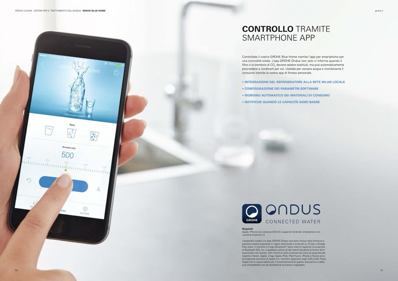Controllate il vostro GROHE Blue Home tramite l’app per smartphone per