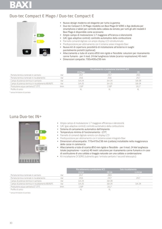• Duo-tec Compact E 24 Mago: modello con Baxi Mago DI SERIE e App dedicata per