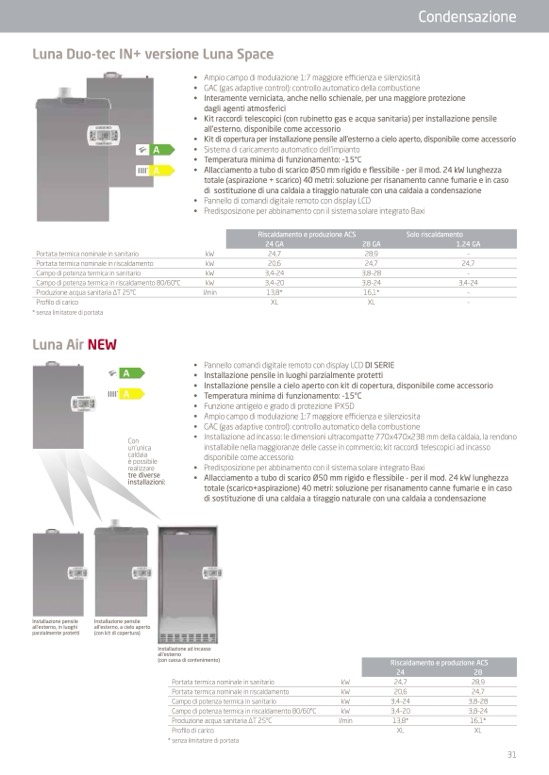• Allacciamento a tubo di scarico Ø50 mm rigido e flessibile - per il mod. 24 kW lunghezza
