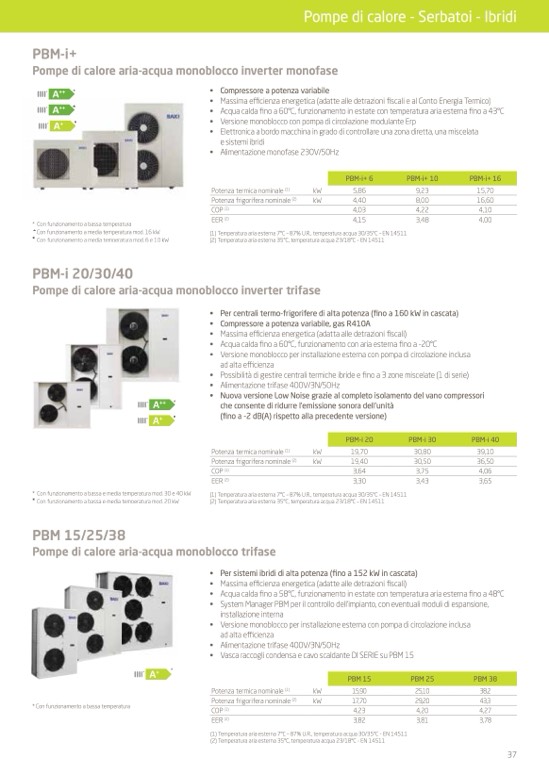 (1) Temperatura aria esterna 7°C – 87% U.R., temperatura acqua 30/35°C - EN 14511