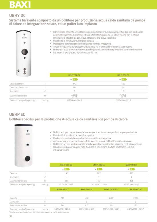 * I bollitori con capacità superiore a 500 litri non sono soggetti ad etichettatura energetica