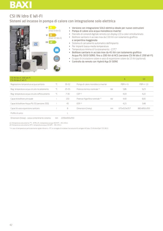Acqua Più 50 DI SERIE: fino a 200 litri di ACS (versione CSI IN Idro E 200 WI-FI)
