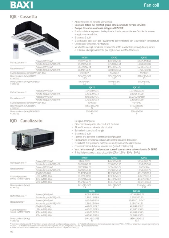 7°C/12°C. - 2) Modalità riscaldamento: temperatura aria in ingresso 20°C b.s., temperatura acqua in ingresso/uscita 45/40°C.