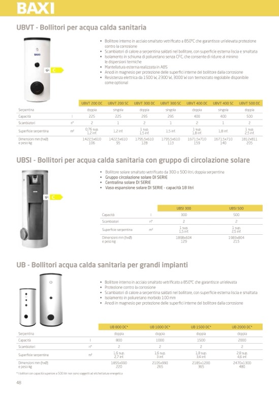 * I bollitori con capacità superiore a 500 litri non sono soggetti ad etichettatura energetica