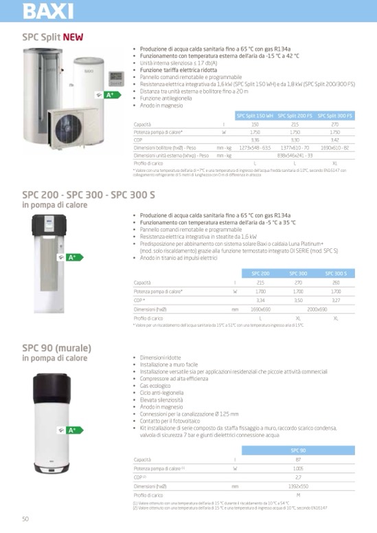 • Resistenza elettrica integrativa da 1,6 kW (SPC Split 150 WH) e da 1,8 kW (SPC Split 200/300 FS)