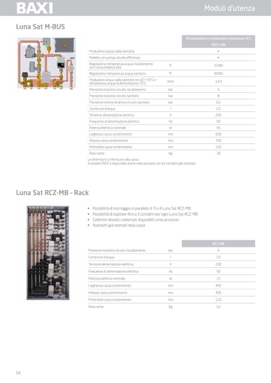 • Possibilità di ospitare fino a 3 contalitri per ogni Luna Sat RCZ-MB