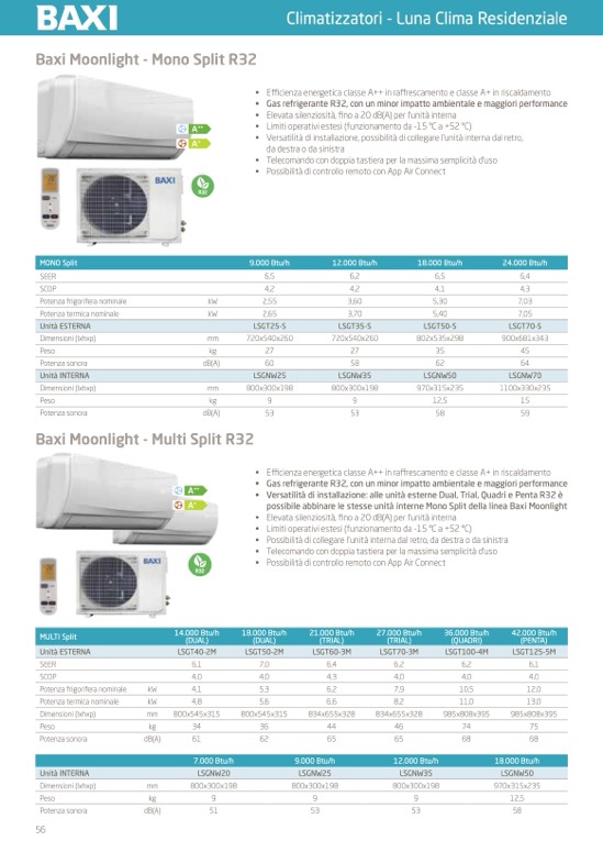 possibile abbinare le stesse unità interne Mono Split della linea Baxi Moonlight