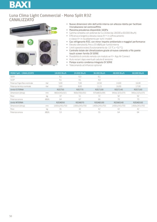 • Gamma completa con potenze da 5 a 16 kW (da 18.000 a 60.000 Btu/h)