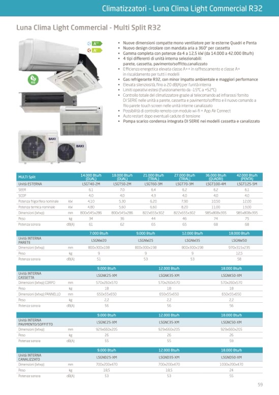 • Gamma completa con potenze da 4 a 12,5 kW (da 14.000 a 42.000 Btu/h)