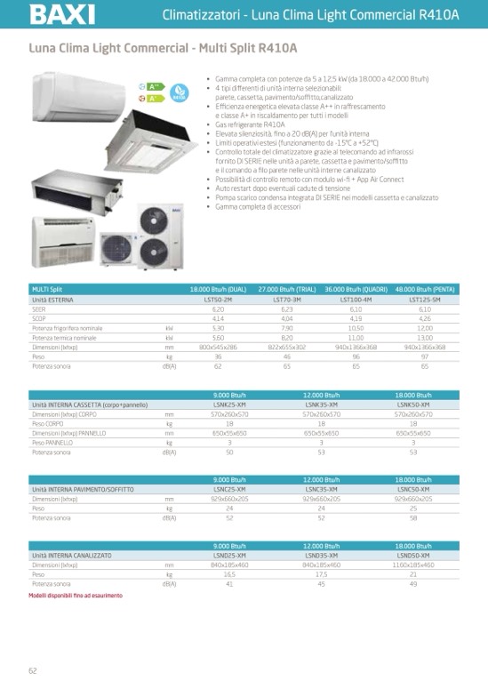 • Gamma completa con potenze da 5 a 12,5 kW (da 18.000 a 42.000 Btu/h)