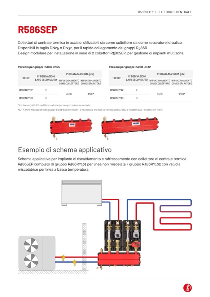NOTA. Per l’installazione dei gruppi di distribuzione R586R è necessario ordinare le valvole a sfera R252 o in alternativa i bocchettoni R37K.