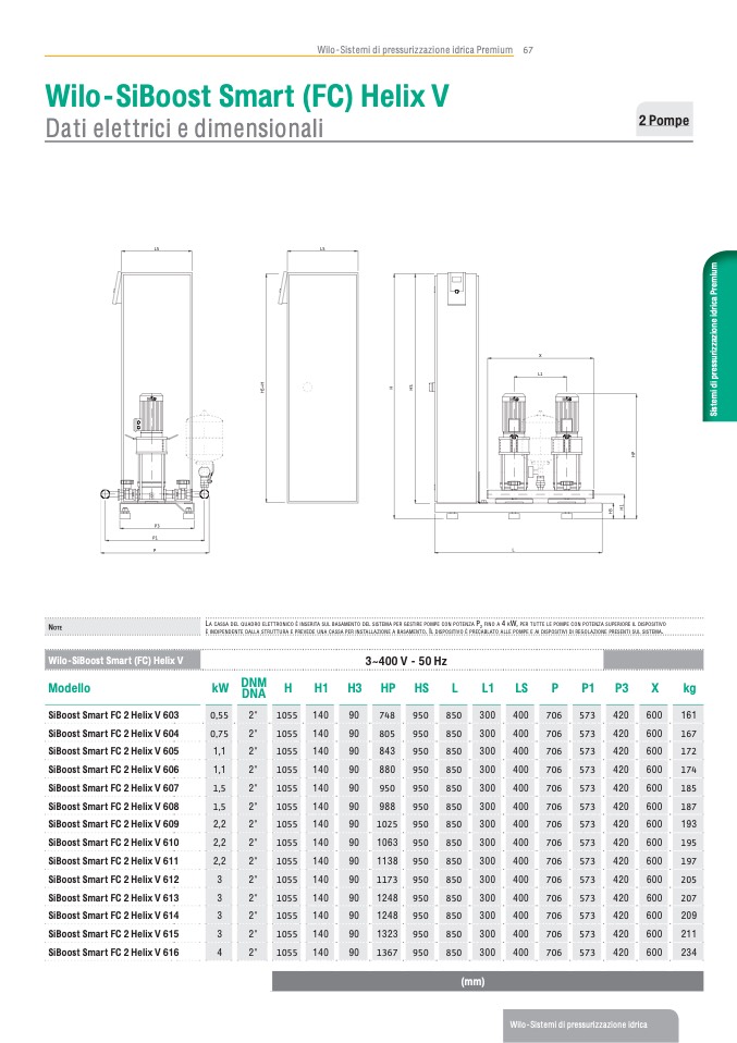 LA CASSA DEL QUADRO ELETTRONICO È INSERITA SUL BASAMENTO DEL SISTEMA PER GESTIRE POMPE CON POTENZA P