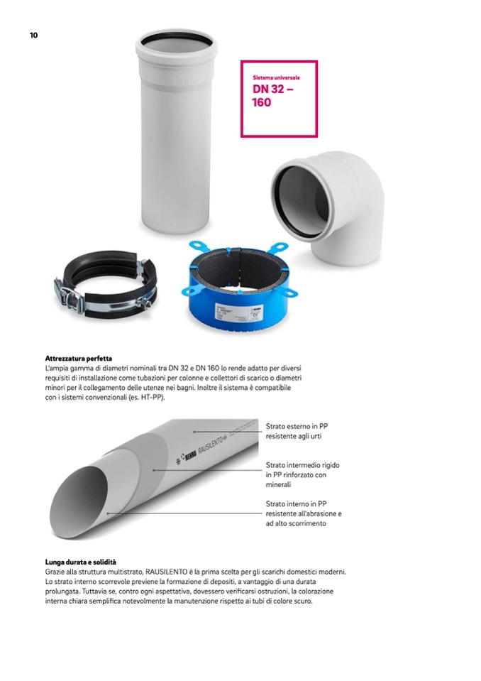 Grazie alla struttura multistrato, RAUSILENTO è la prima scelta per gli scarichi domestici moderni.