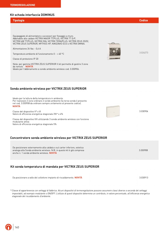 * Classe di appartenenza con settaggi di fabbrica. Alcuni dispositivi di termoregolazione possono assumere classi diverse a seconda dei settaggi