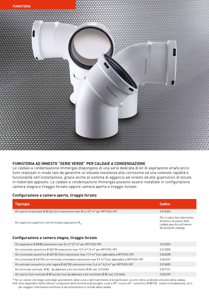 N.B. Sono disponibili inoltre ulteriori componenti della fumisteria (prolunghe, curve a 90°, curve a 45°, concentrici Ø 80/125, sistemi d’intubamento, etc.);