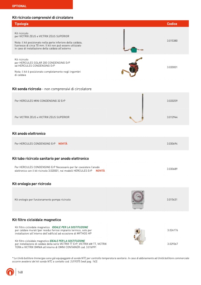 occorre avvalersi del kit sonda NTC a contatto cod. 3.019375 (vedi pag. 143).