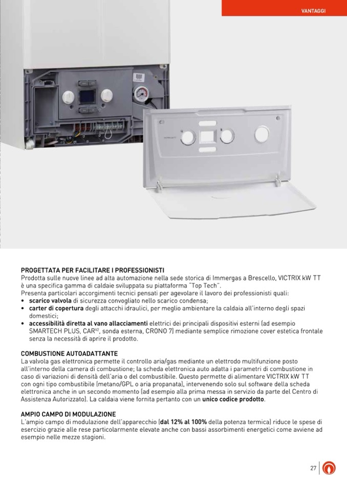 caso di variazioni di densità dell’aria o del combustibile. Questo permette di alimentare VICTRIX kW TT