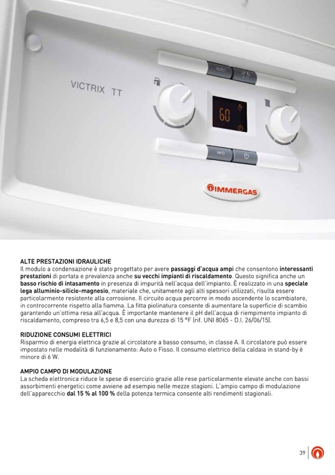 riscaldamento, compreso tra 6,5 e 8,5 con una durezza di 15 °F (rif. UNI 8065 - D.I. 26/06/15).