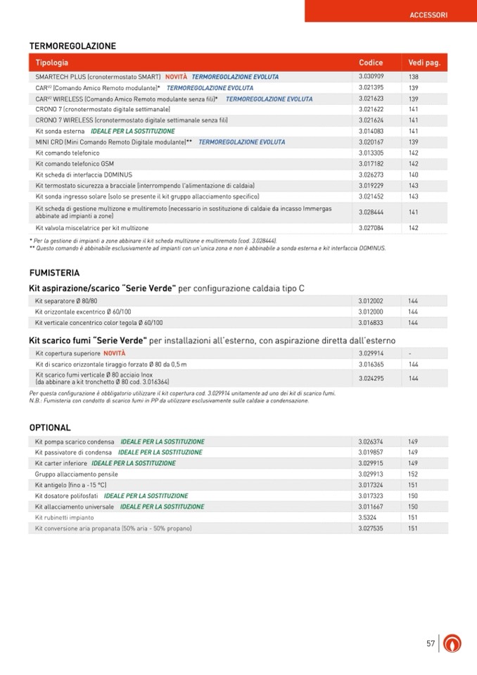 N.B.: Fumisteria con condotto di scarico fumi in PP da utilizzare esclusivamente sulle caldaie a condensazione.