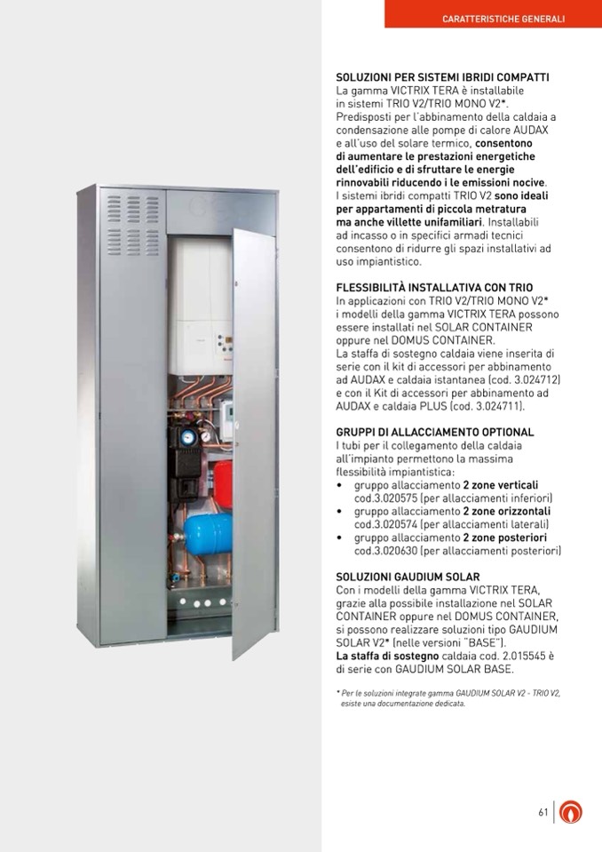 * Per le soluzioni integrate gamma GAUDIUM SOLAR V2 - TRIO V2,