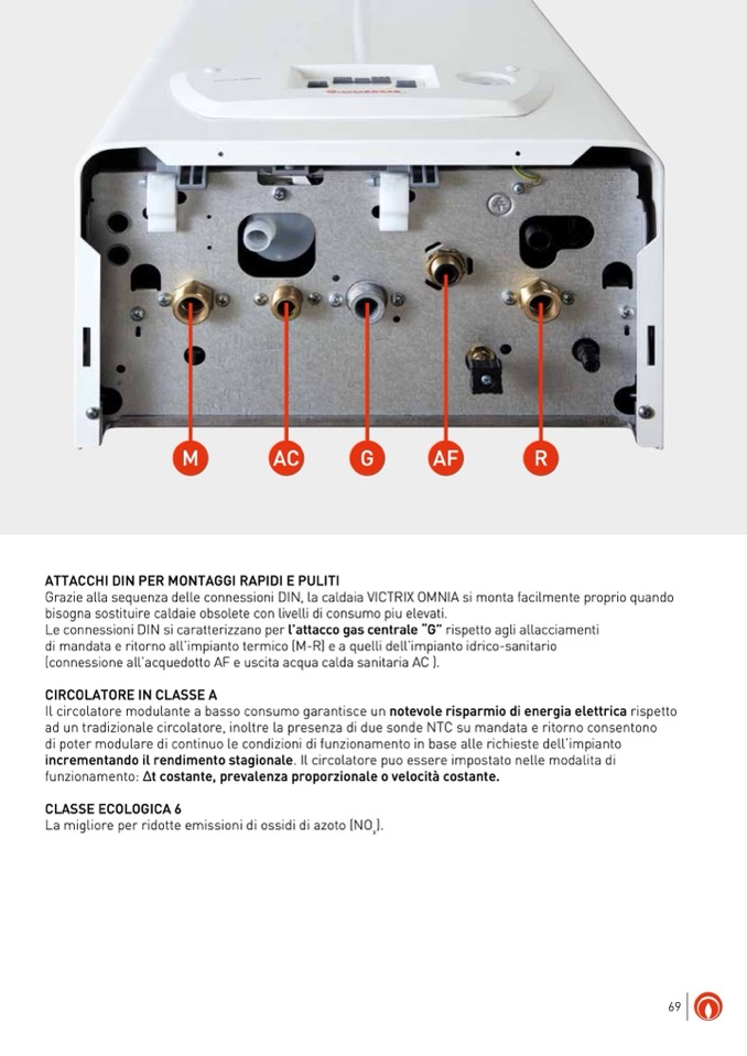 Grazie alla sequenza delle connessioni DIN, la caldaia VICTRIX OMNIA si monta facilmente proprio quando