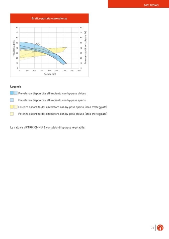 Potenza assorbita dal circolatore con by-pass chiuso (area tratteggiata)