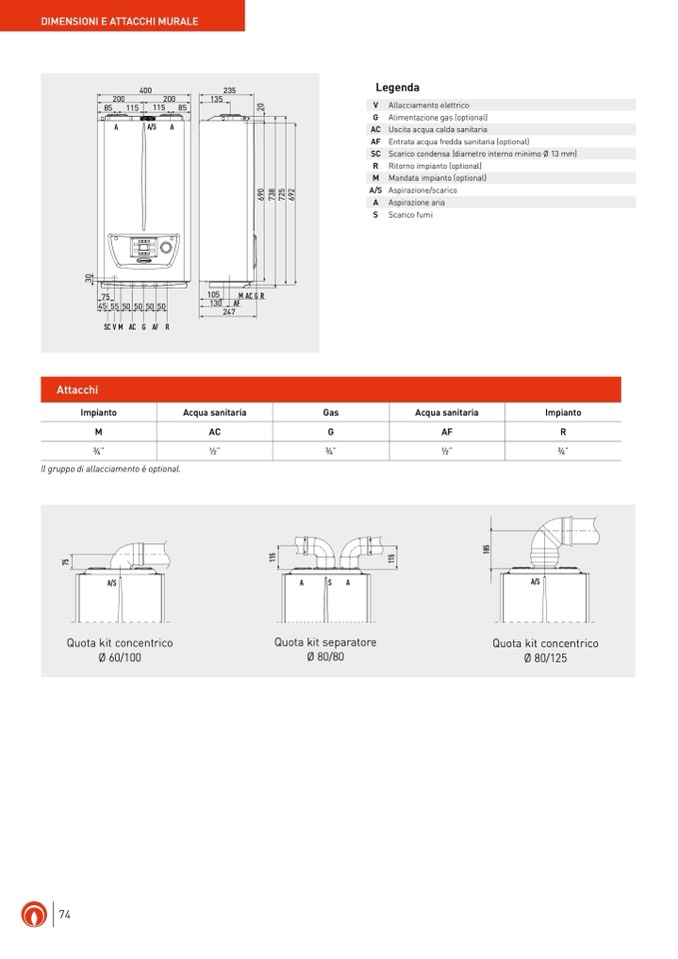 Scarico condensa (diametro interno minimo Ø 13 mm)