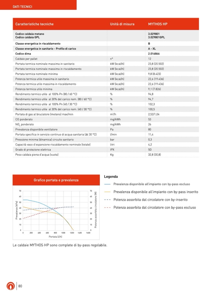 Portata specifica in servizio continuo di acqua sanitaria (∆t 30 °C)