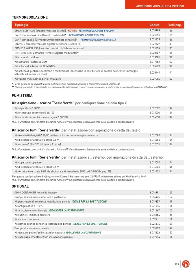 N.B.: Fumisteria con condotto di scarico fumi in PP da utilizzare esclusivamente sulle caldaie a condensazione.