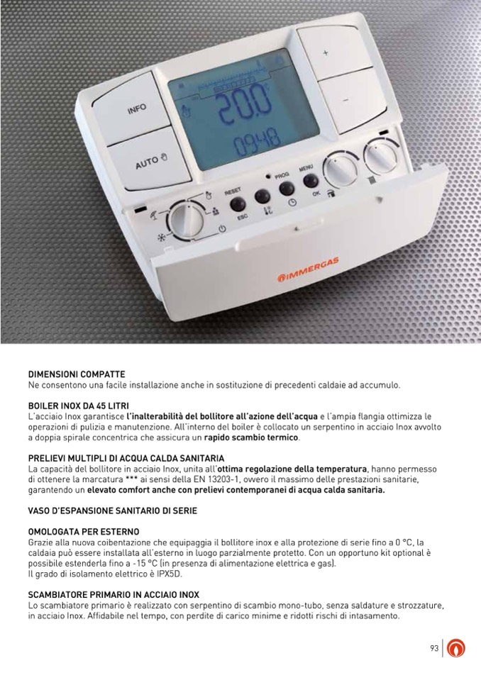Grazie alla nuova coibentazione che equipaggia il bollitore inox e alla protezione di serie fino a 0 °C, la