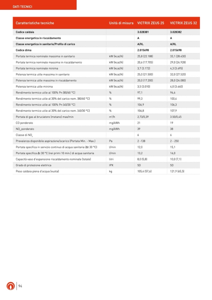 Rendimento termico utile al 30% del carico nom. (40/30 °C)