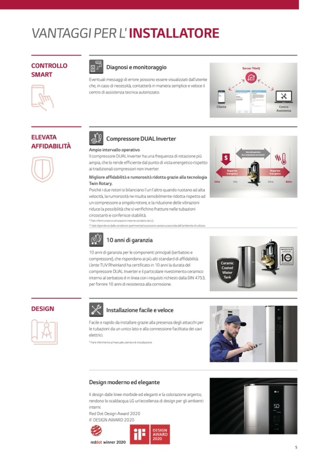 rendono lo scaldacqua LG un'eccellenza di design per gli ambienti