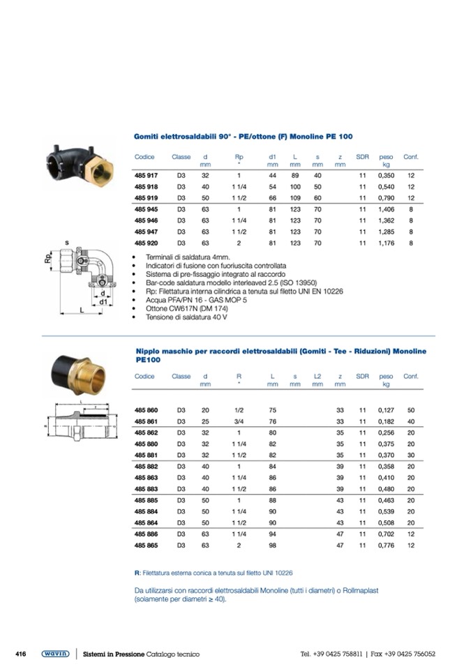 Gomiti elettrosaldabili 90° - PE/ottone (F) Monoline PE 100