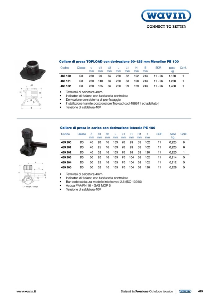 Collare di presa TOPLOAD con derivazione 90-125 mm Monoline PE 100