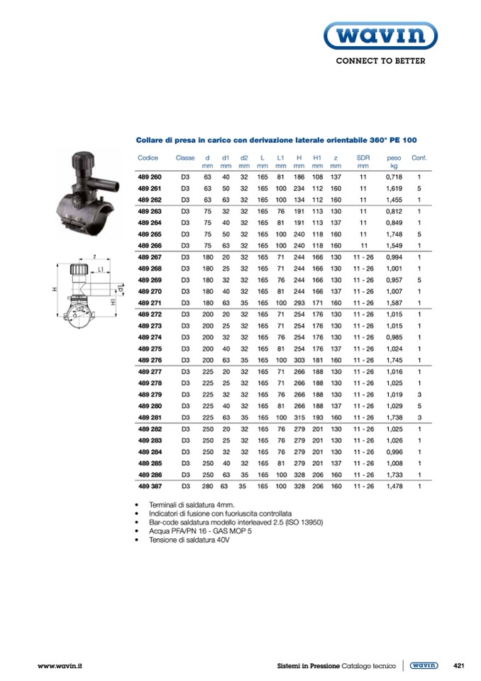 Collare di presa in carico con derivazione laterale orientabile 360° PE 100